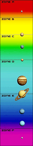 Im Folgenden haben wir eine Zonenkarte erstellt, die darstellen soll, wie schwierig es ist, unsere Sonnensystem zu besiedeln und welche technischen Errungenschaften dafür notwendig sind: