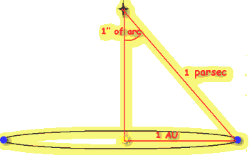 "Ein Objekt ist von der Erde genau 1 Parsec entfernt, wenn von diesem Objekt aus gesehen der Durchmesser